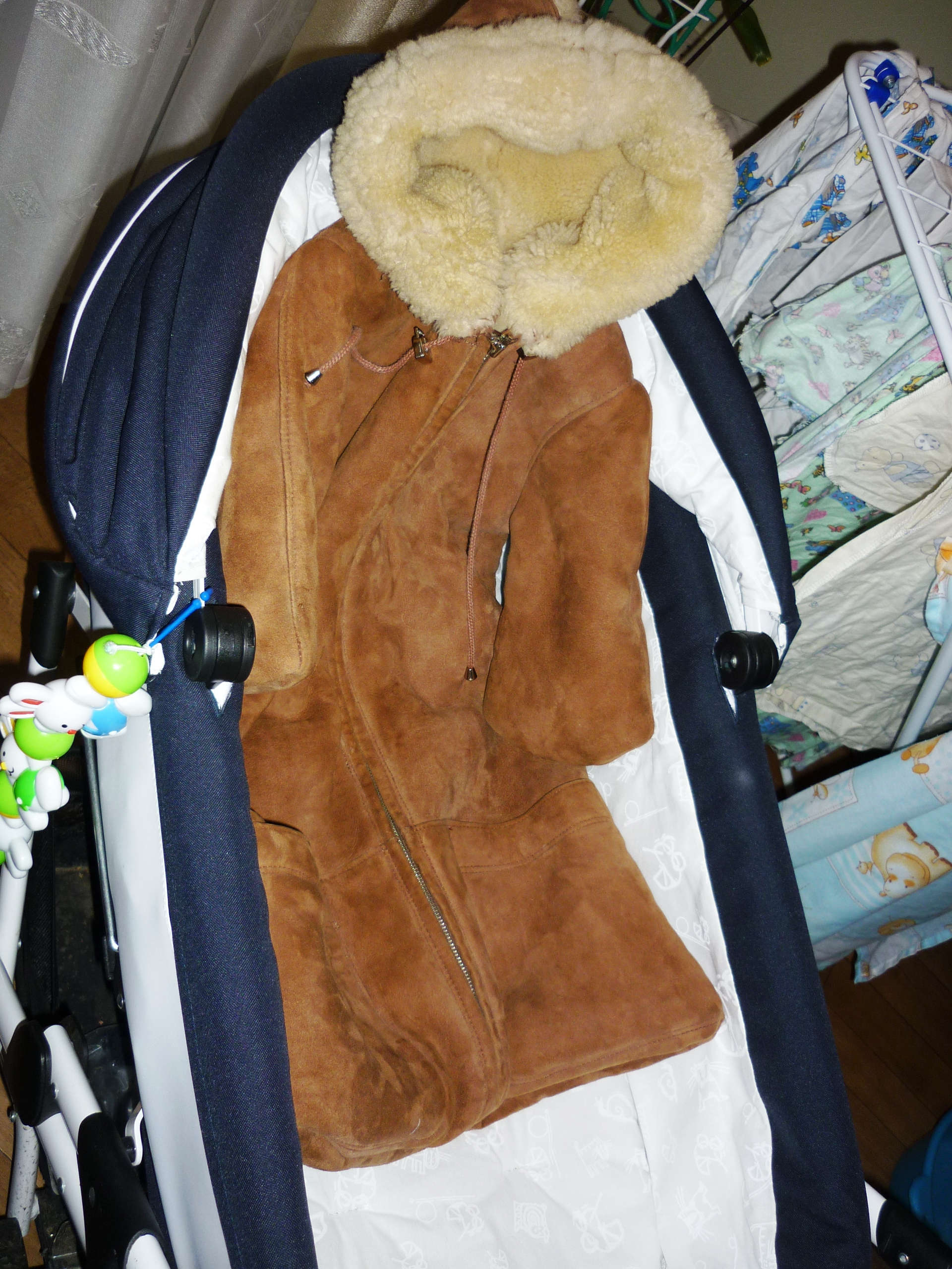 Может одеваться как самостоятельный конверт,так и как меховой чехол в коляску.